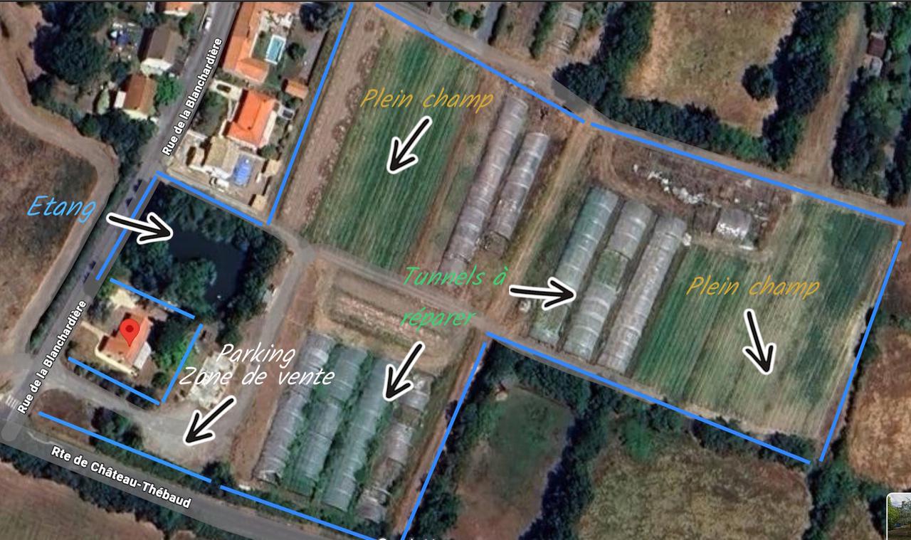 Le terrain choisi par Saskia est une ancienne exploitation maraîchère de 2,4 hectares. Le site dispose déjà de nombreux atouts : tunnels, étang, grand parking et un espace adapté à la vente directe.